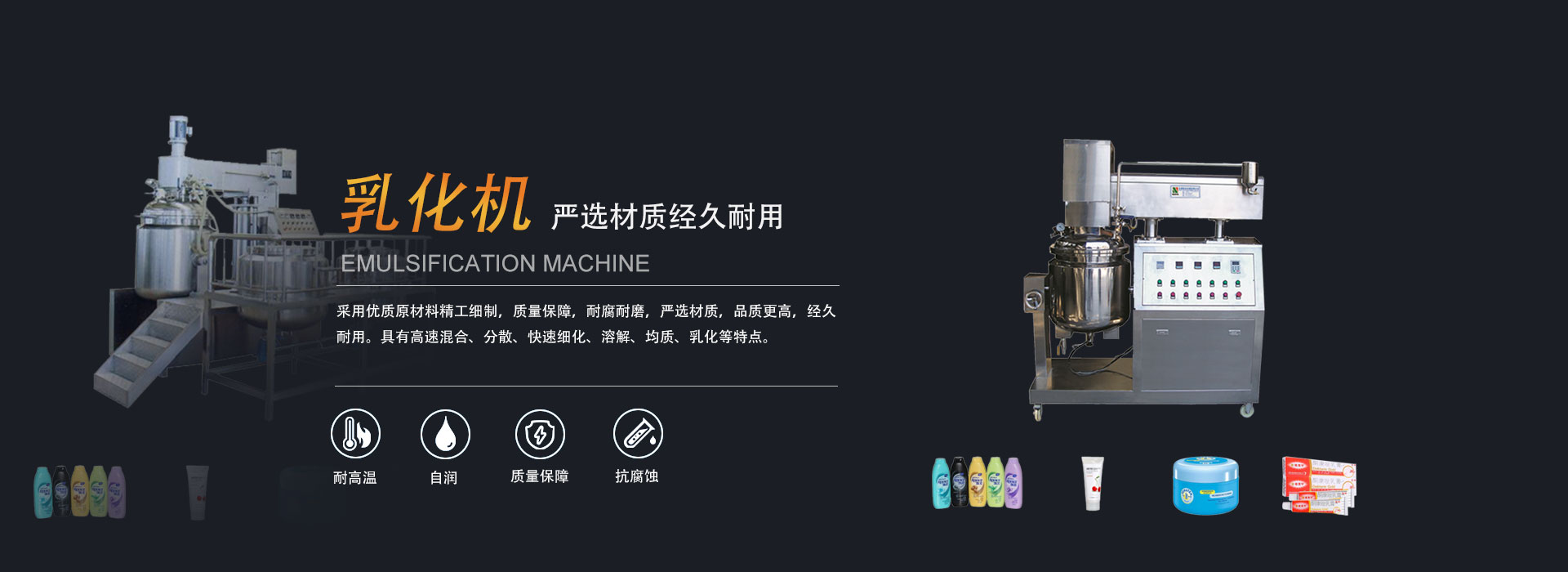 公司主營(yíng)乳化機(jī)、灌裝機(jī)、混合粉碎機(jī)等產(chǎn)品